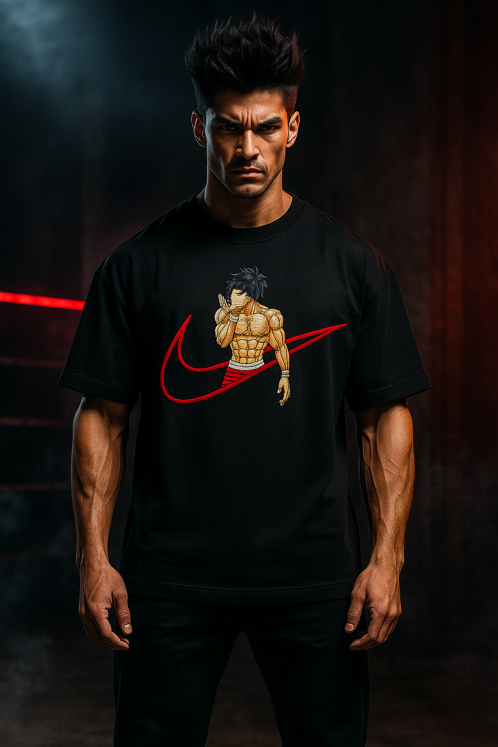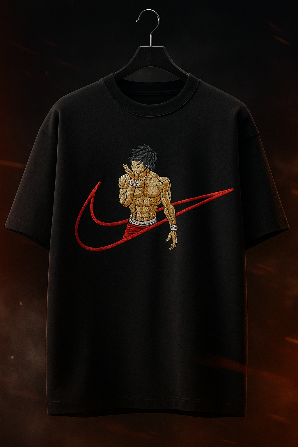 Decrease quantity for Baki Black Oversized Embroidery T-shirt